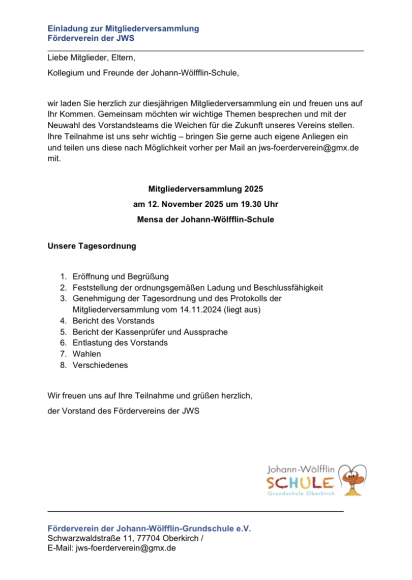 Zur Information: Die Originalfassung der Satzung wurde am 05.11.1991 in einer Mitgliederversammlung dahingehend angepasst, dass sich der Name der Schule von „Hans-Furler-Grundschule“ in „Johann-Wölfflin-Schule“ geändert hat.