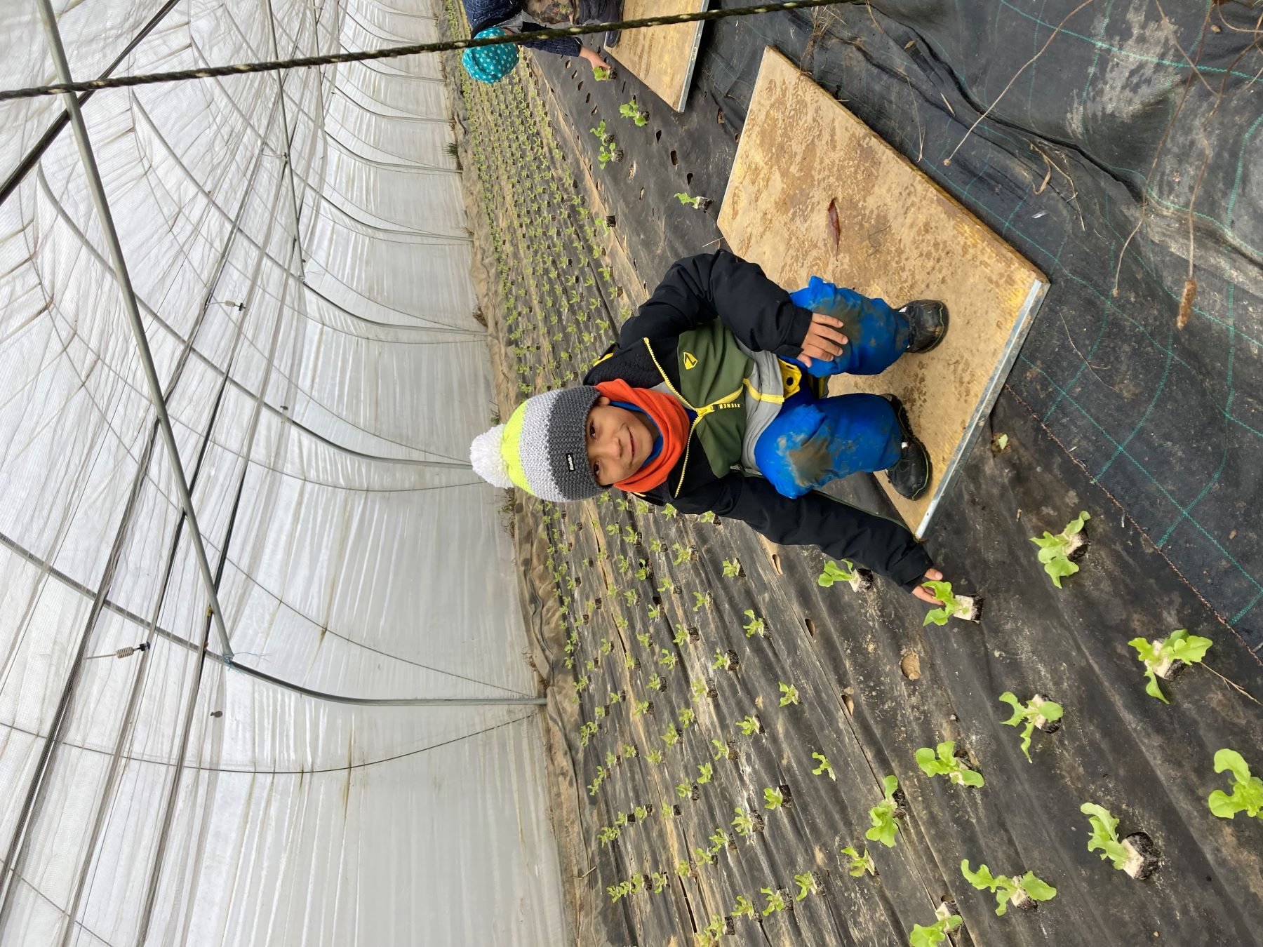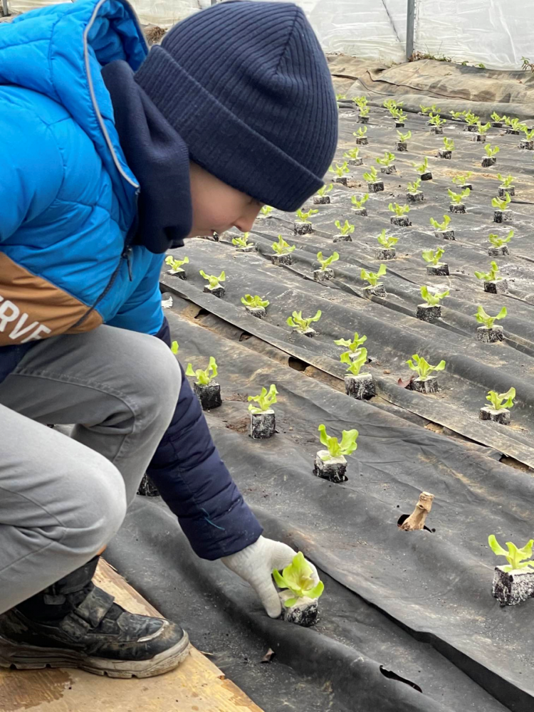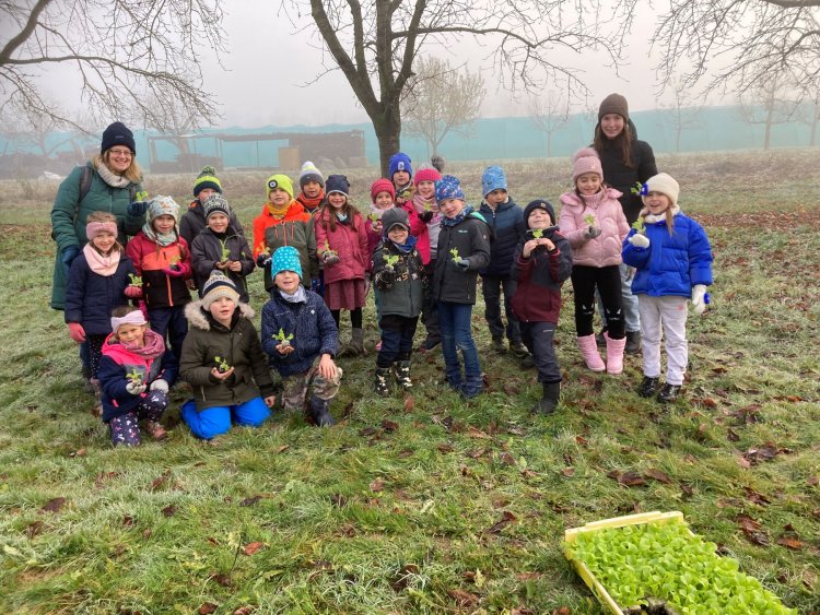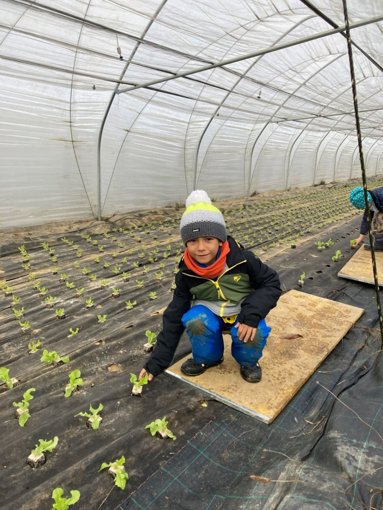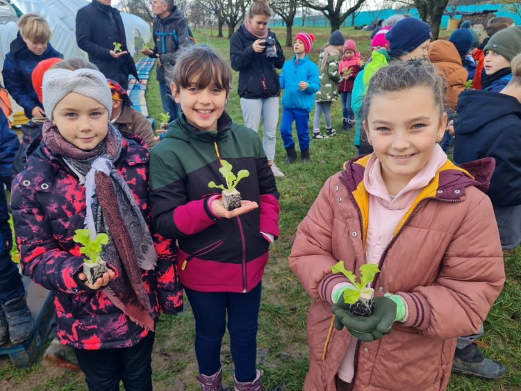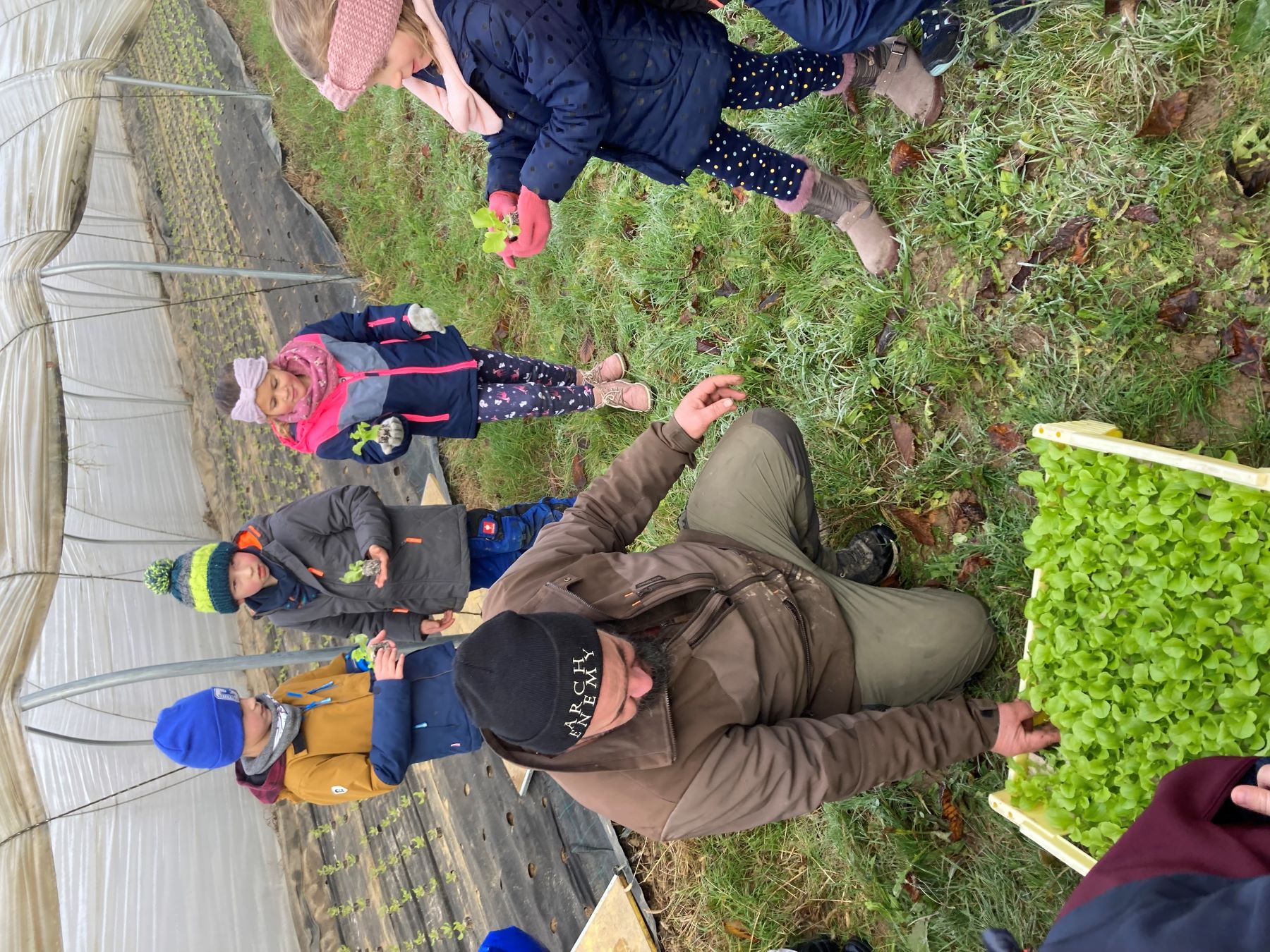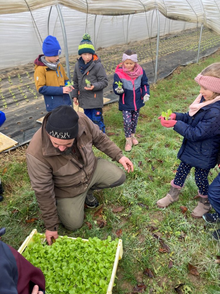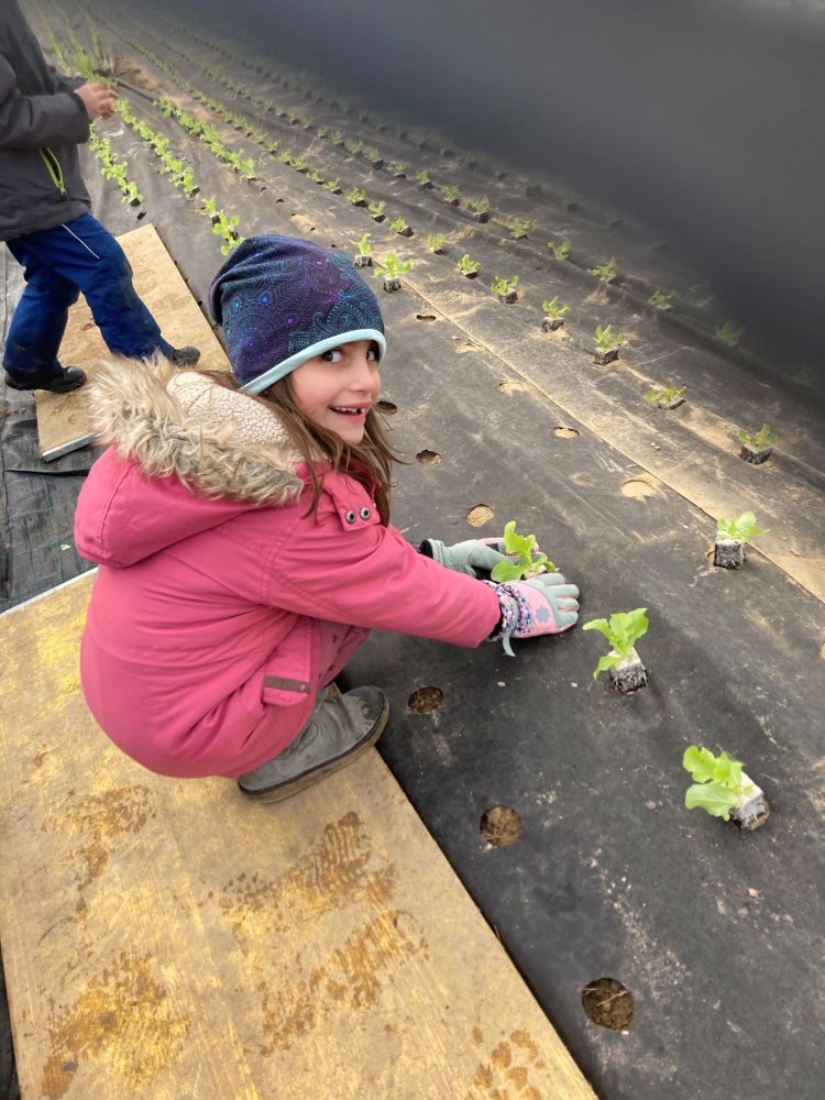 JWS-Klasser bei der Salatpflanzaktion auf dem Demeterhof Wilhelm in Haslach