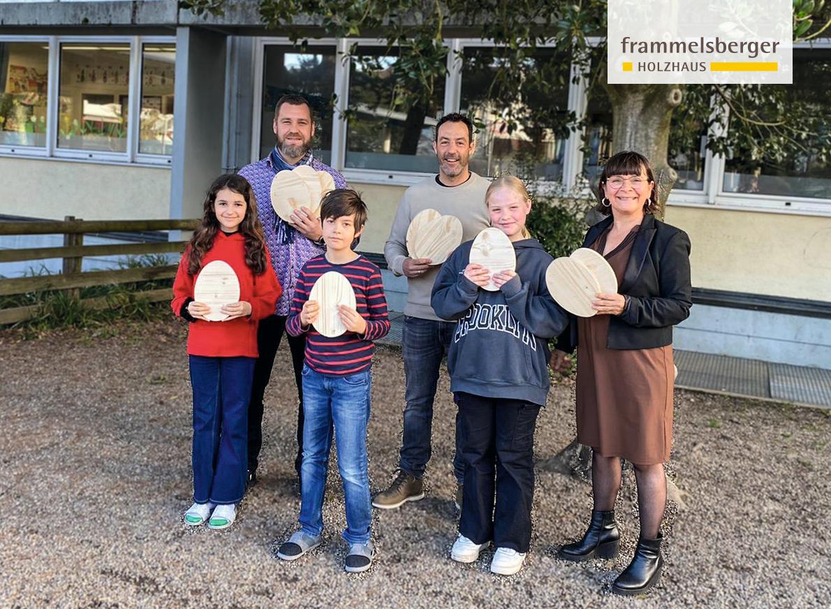 Am Freitag den 17.03.2023 überreichte die Firma Frammelsberger Holzhaus der Schulleitung 100 Ostereier, die aus Restholz gefertigt wurden.