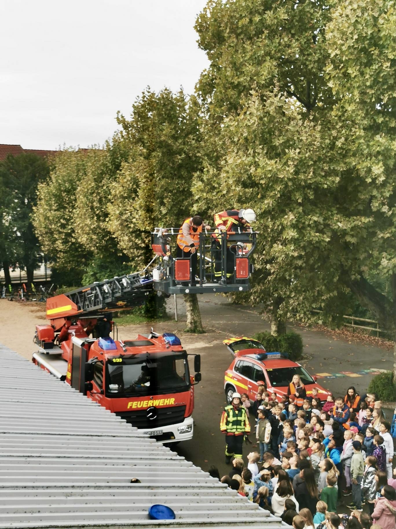 Ich fand´s dann richtig cool, als wir alle um das Feuerwehrauto standen und Frau Woelki mit der Drehleiter hooooch in den Himmel fuhr. Kinder, das hätte ich auch gern gemacht ;) Aber leider mussten wir dann schon wieder rein. War vielleicht auch besser so, denn mir war mittlerweile richtig kalt geworden.