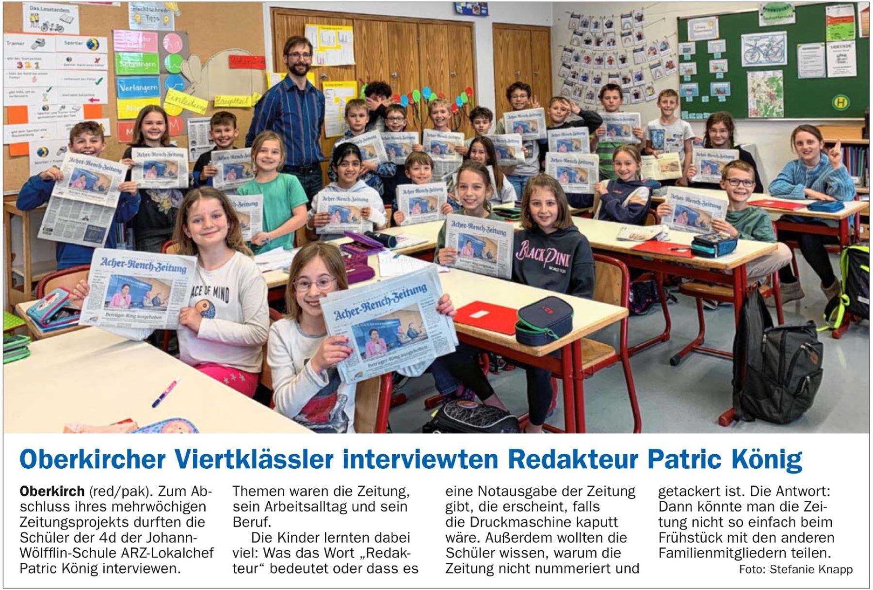Auch in diesem Jahr nahmen die vierten Klassen der JWS am Zeitungsprojekt der Mittelbadischen Presse teil. Über vier Wochen erhielt jedes Kind eine eigene Zeitung, auf Wunsch auch am Wochenende nach Hause. So lernten die Kinder im Deutschunterricht den Aufbau und die Entstehung einer Zeitung kennen, vertieften ihr Wissen über Berichte und schulten ihre Lese- und Leseverständniskompetenzen. Aufgrund der Vielzahl an Artikeln aus den verschiedenen Ressorts fand jede Schülerin und jeder Schüler täglich einen spannenden Artikel für sich und konnte sich so über das Tagesgeschehen aus der Welt, aus Deutschland und Oberkirchs Umfeld informieren.