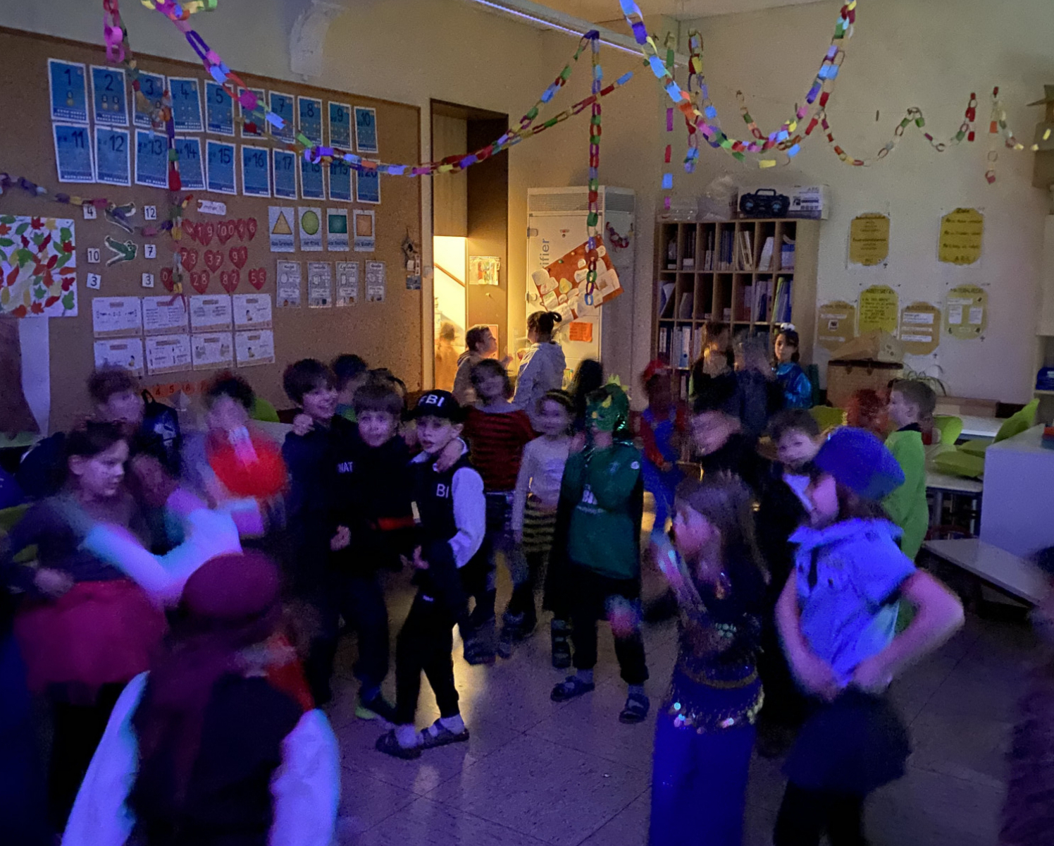 Die Polonaise aus dem Hauptgebäude schwappte auch zu uns rüber und holte uns ab. So bekamen wir den Besuch der Notire und Leimener mit. Danach wurden unsere Räume in der AGS zur Partyzone für alle Zweitklässler. Wer dabei war, weiß: Die Stimmung war legendär!