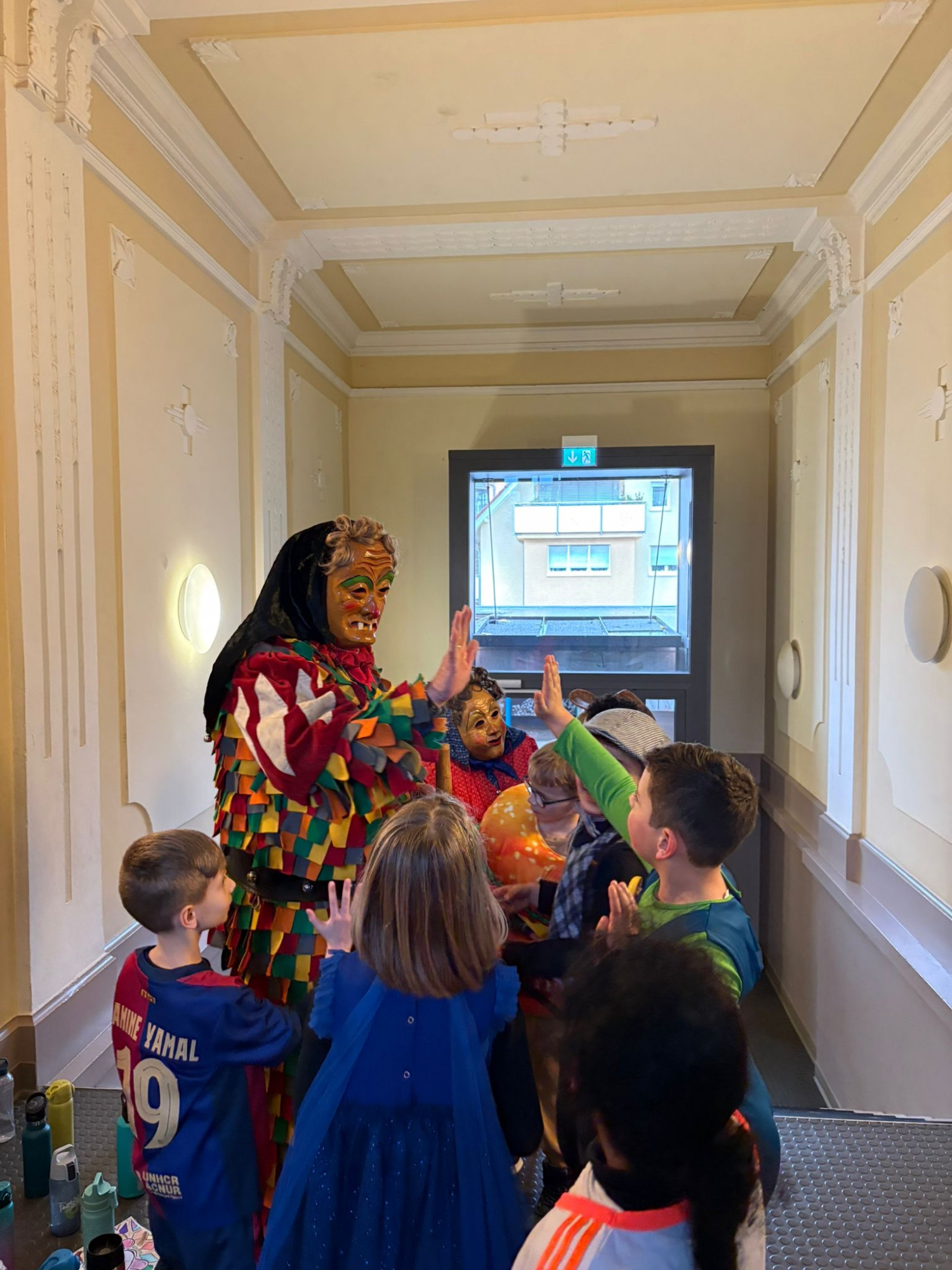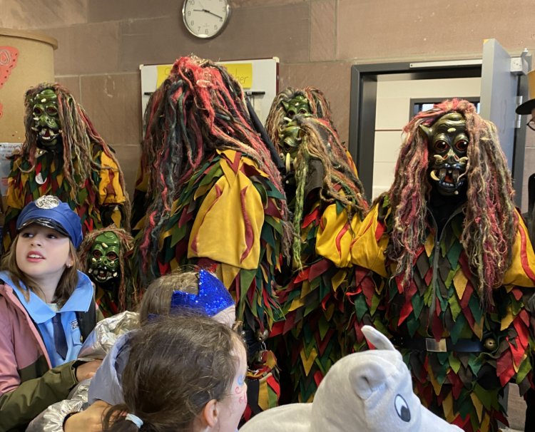 Ein echtes Highlight war gegen Ende des Tages der Besuch der Narrenzunft Oberkirch. Schnurri und Schlappgret sorgten für traditionelles Fasentfeeling und eine Zusatzportion Bonbons.