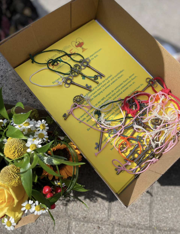 Am letzten Schultag vor den Sommerferien wurden an allen Standorten zunächst die Viertklässler*innen von Frau Woelki verabschiedet. Neben Auszeichnungen für besondere Leistungen in den Schulfächern, sowie im sportlichen und sozialen Bereich gab es auch einen Schlüssel als Abschiedsgeschenk. Der Schlüssel symbolisiert, so Frau Woelki, den Übergang zu etwas Neuem aber auch die bereits in der Grundschulzeit erworbenen und gefestigten Schlüsselkompetenzen.