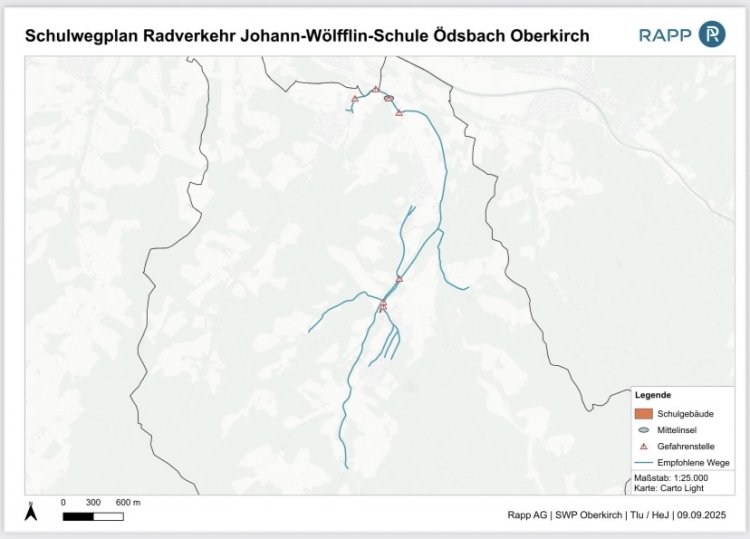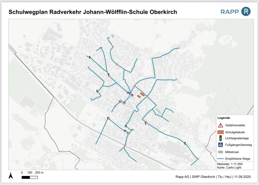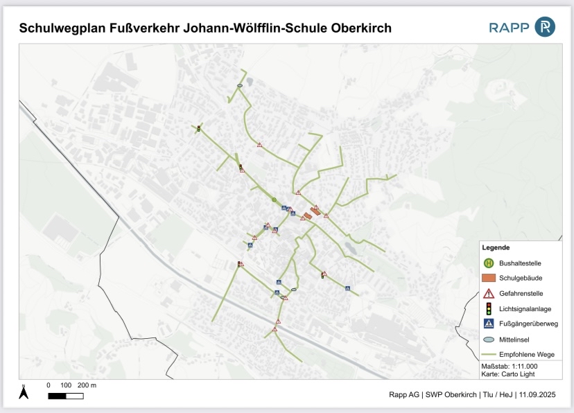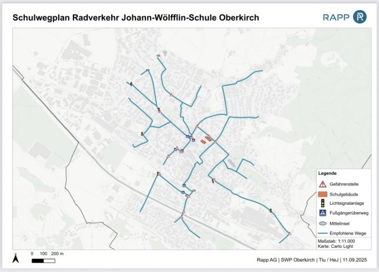Die Stadt Oberkirch hat die Schulwegeplanung für alle städtischen Schulen in der Kernstadt und den Ortsteilen abgeschlossen. Erarbeitet wurden aktuelle Geh- und Radschulwegpläne. Sie zeigen empfohlene Routen für den Fuß- und Radverkehr und sie markieren sowohl punktuelle als auch streckenhafte Gefahrenstellen. Ziel ist es, die Wege der Schülerinnen und Schüler sicherer zu gestalten und die selbständige Mobilität zu fördern.
