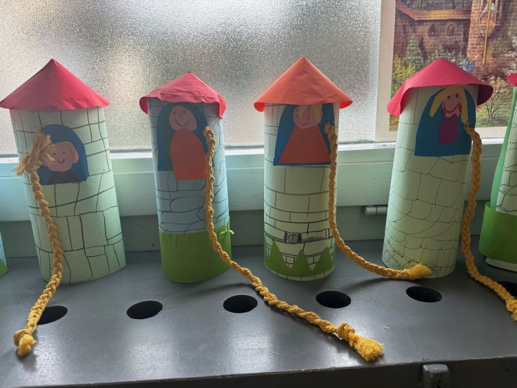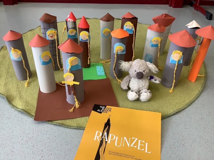Die 1.Klassen haben sogar das Märchen mit ins Klassenzimmer zurückgebracht, in dem sie ihren Turm im Kunstunterricht nachgebaut haben. WH