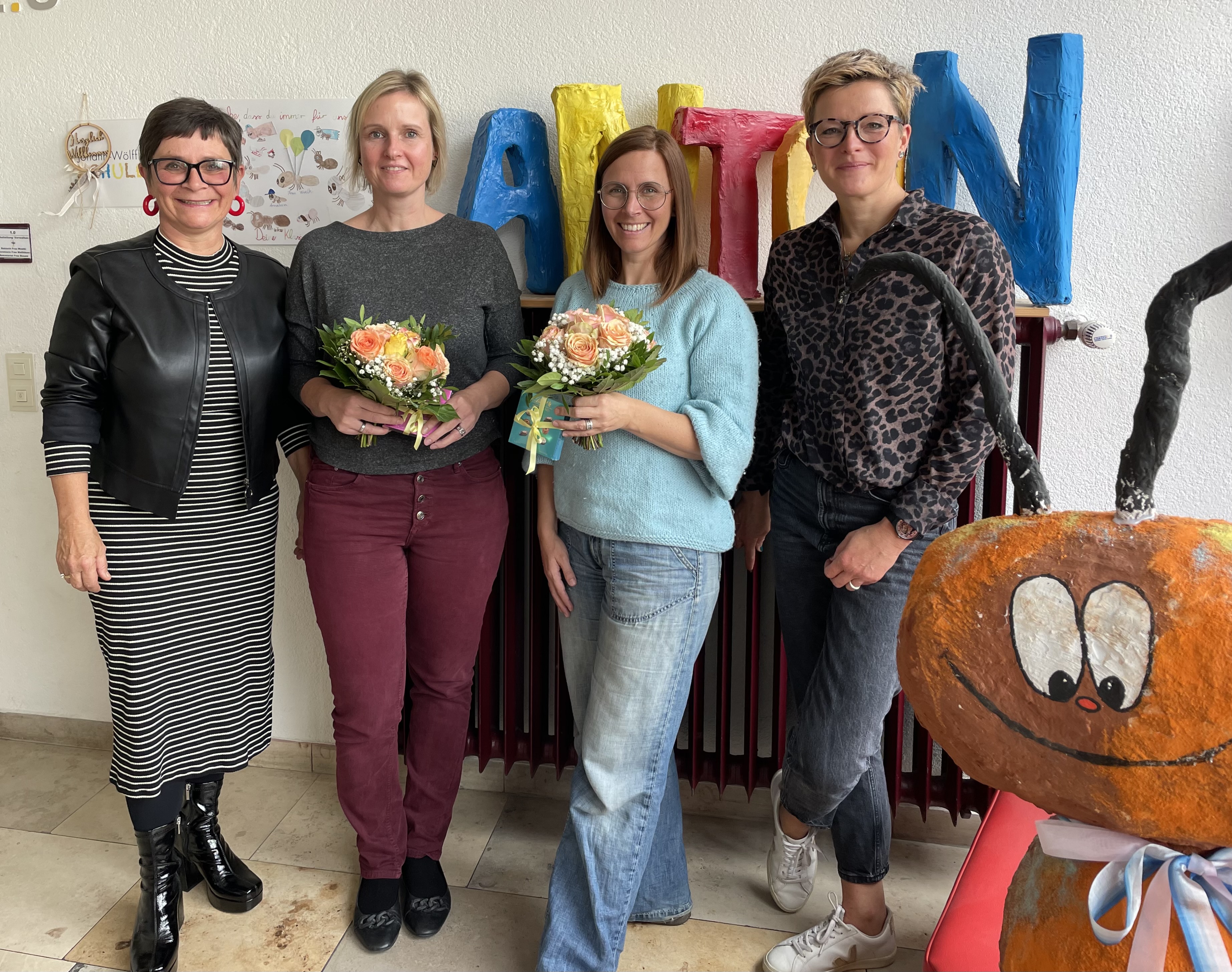 Frau Ihling- Fehrle und Schulleiterin Frau Woelki bedankten sich bei den ehemaligen Vorstandsmitgliedern N. Sester und F. Baldus- Fleck für Ihre engagierte Arbeit im Elternbeirat.