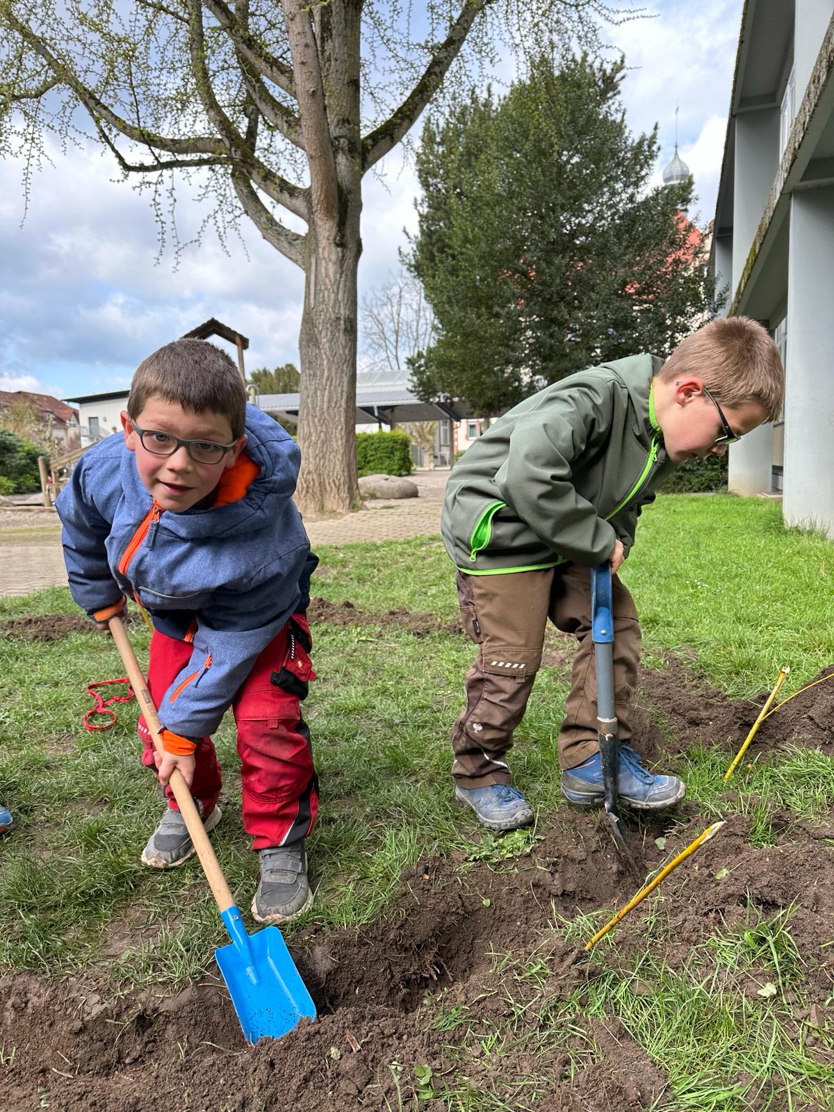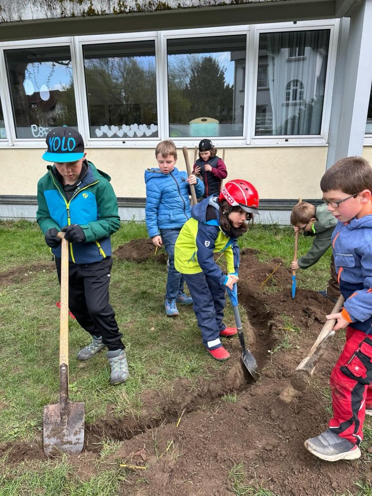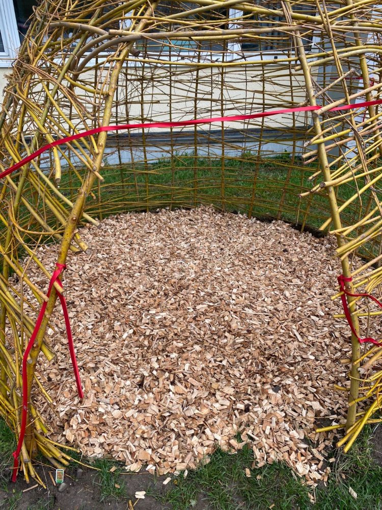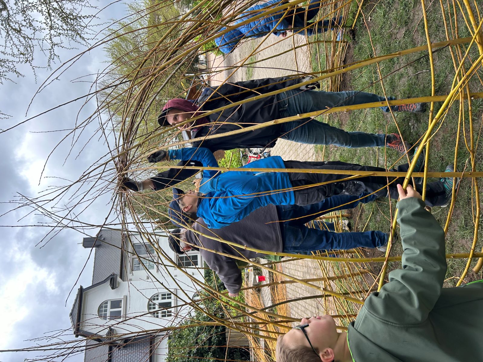 6 Familien sind dem Aufruf des Elternbeirats gefolgt und haben zu Ferienbeginn das schöne Weidentipi gebaut.