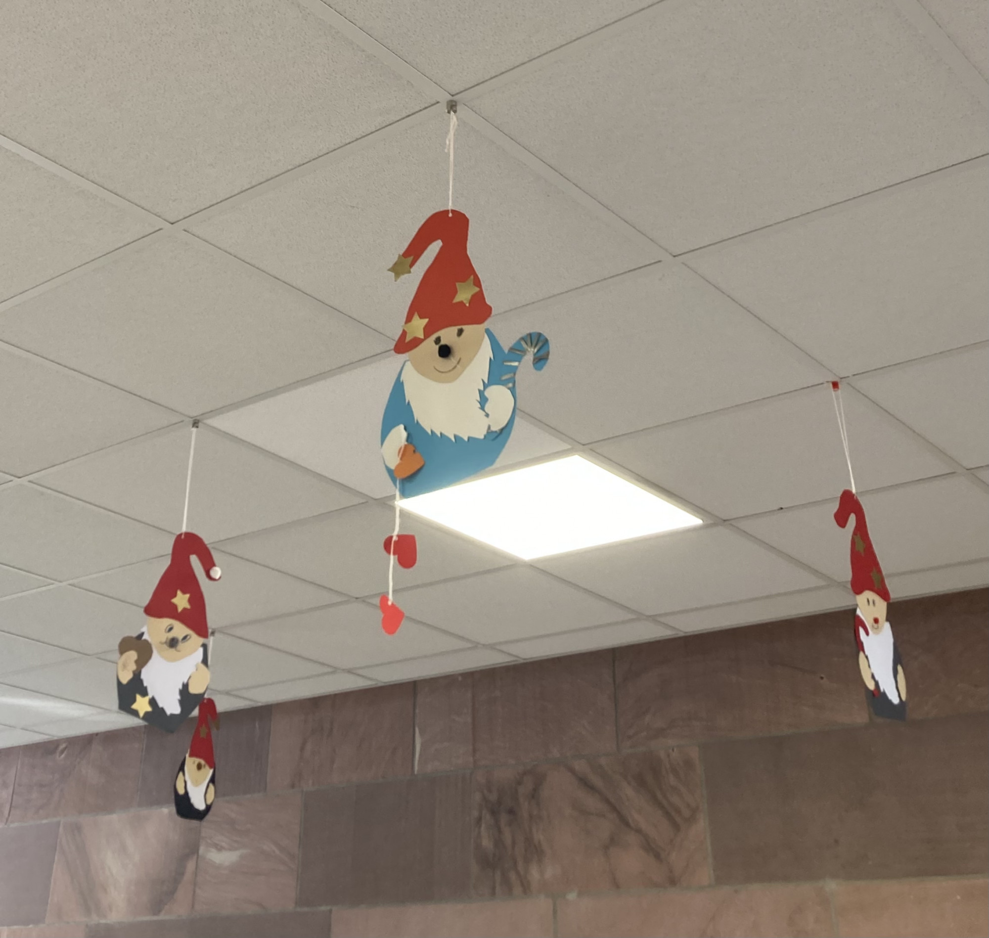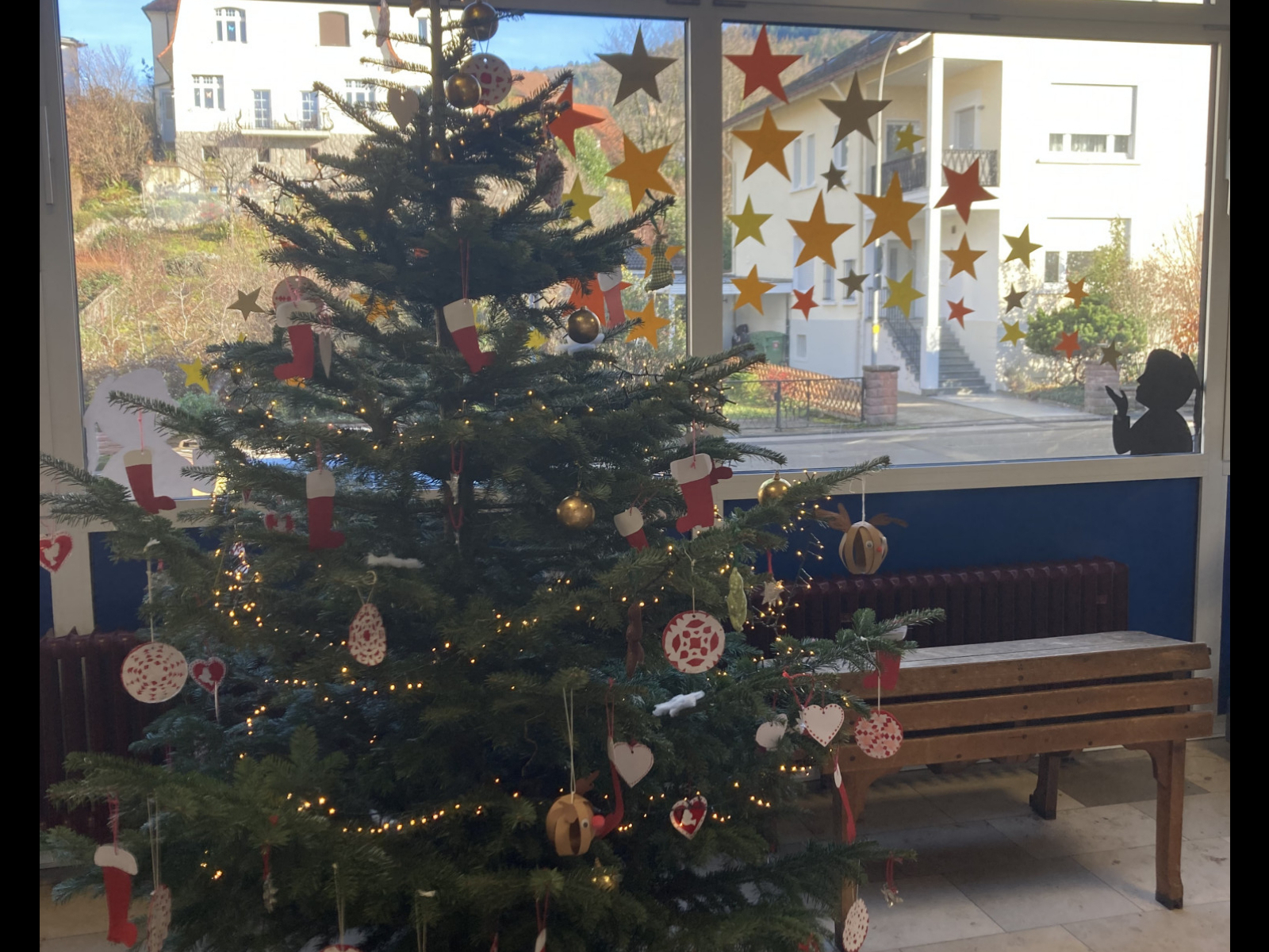 Mit viel Liebe hat dort unser Betreuungsteam zusammen mit etlichen Schulkindern eine weihnachtliche Atmosphäre geschaffen. Es wurde gebastelt, ausgeschnitten, gemalt und geklebt. Dabei entstanden leuchtende Sterne, Weihnachtsbaumschmuck und eine große Wichtelfamilie.