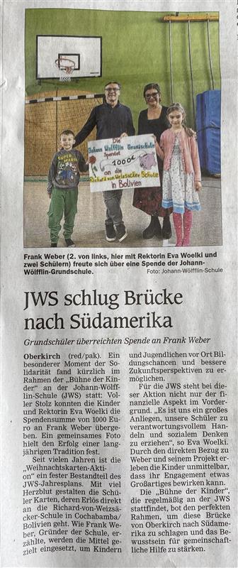 JWS spendet an die Richard-von-Weizsäcker-Schule/Bolivien