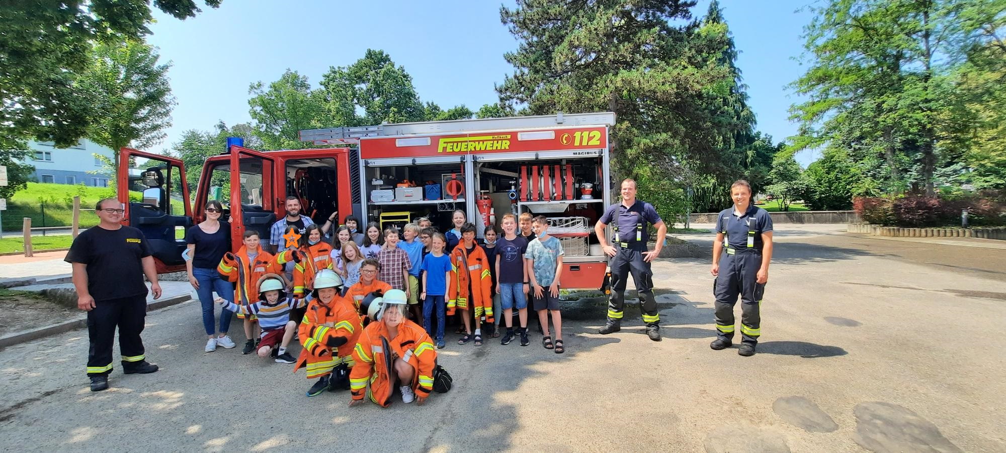 Feuerwehr zu Gast bei unseren Viertklässlern in Nußbach.