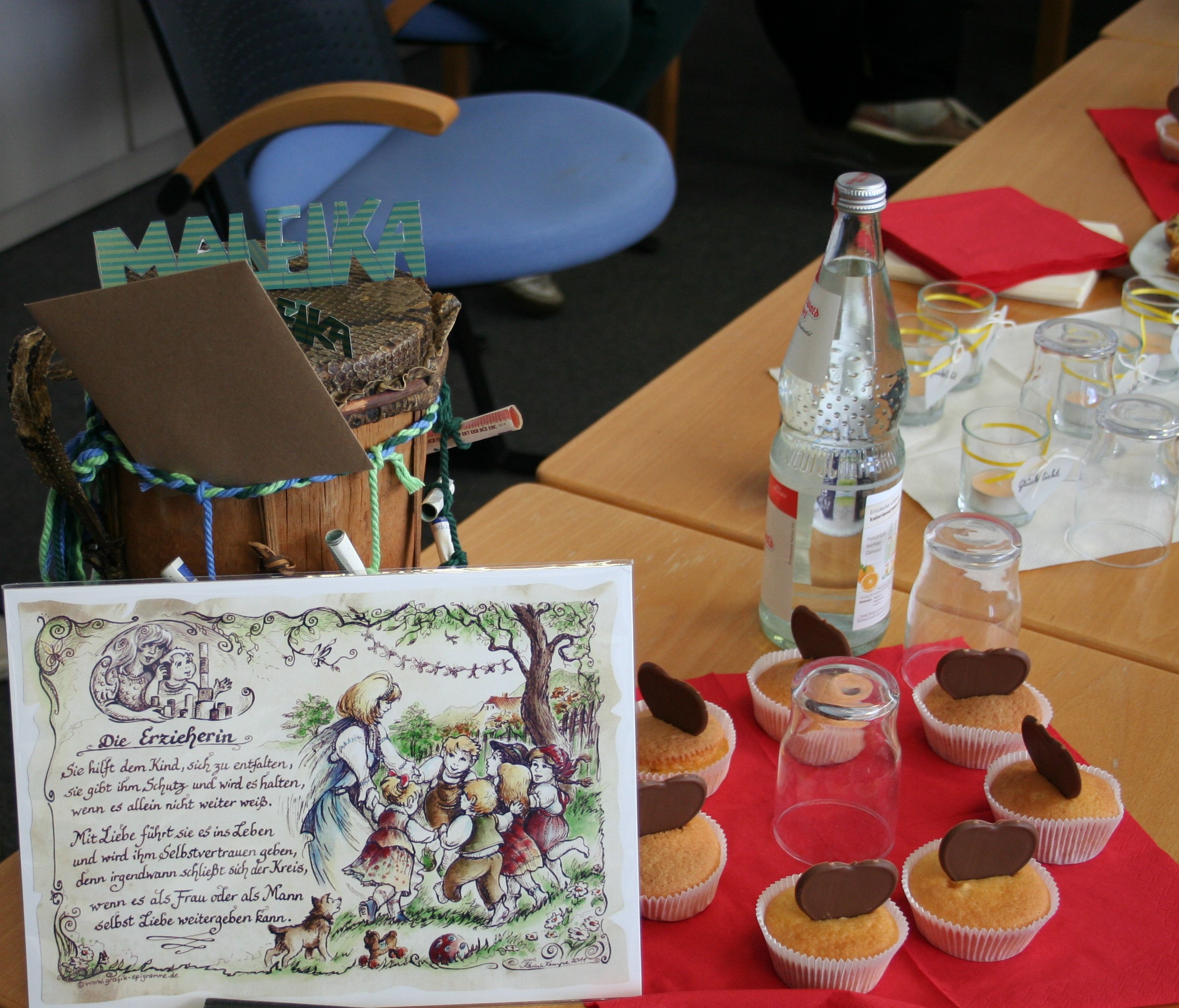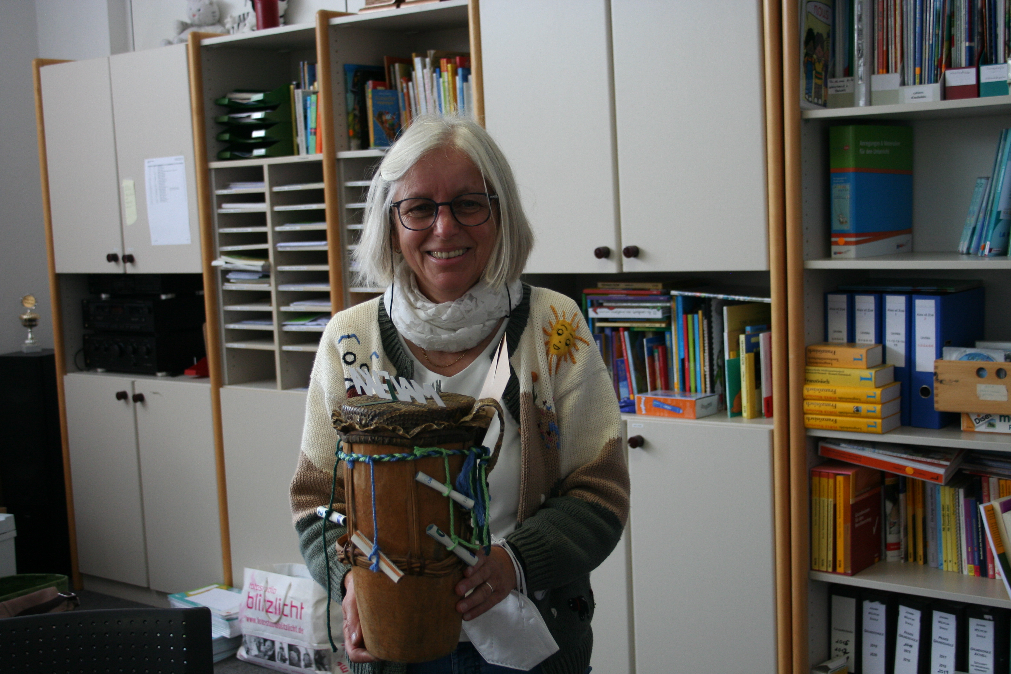 Als Abschiedsgeschenk gab es vom Kollegium eine kleine Trommel mit Geldspenden. Angelika Kleeb unterstützt seit vielen Jahren das Malaika-Projekt in Kenia, dem das gesammelte Geld zugutekommt.