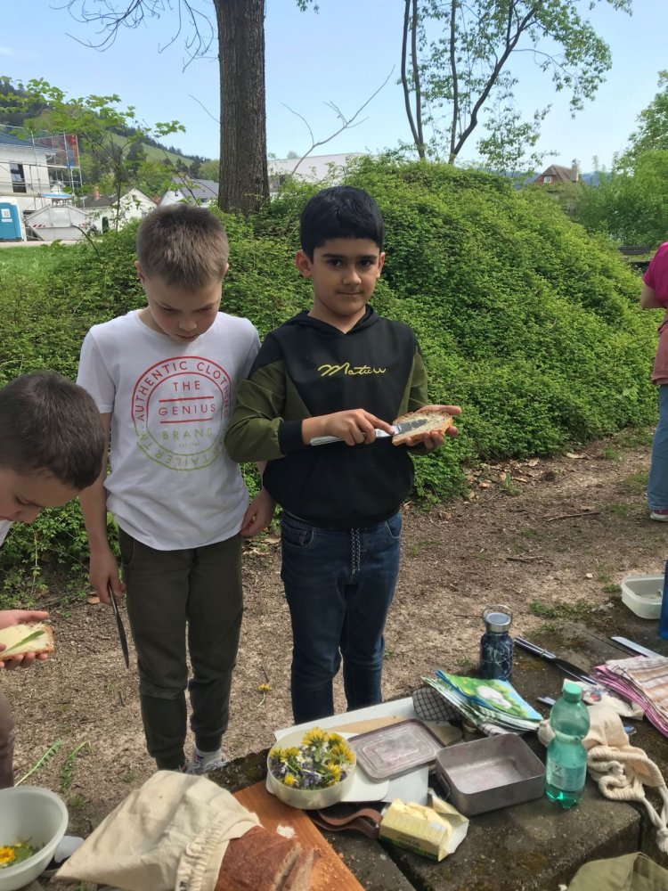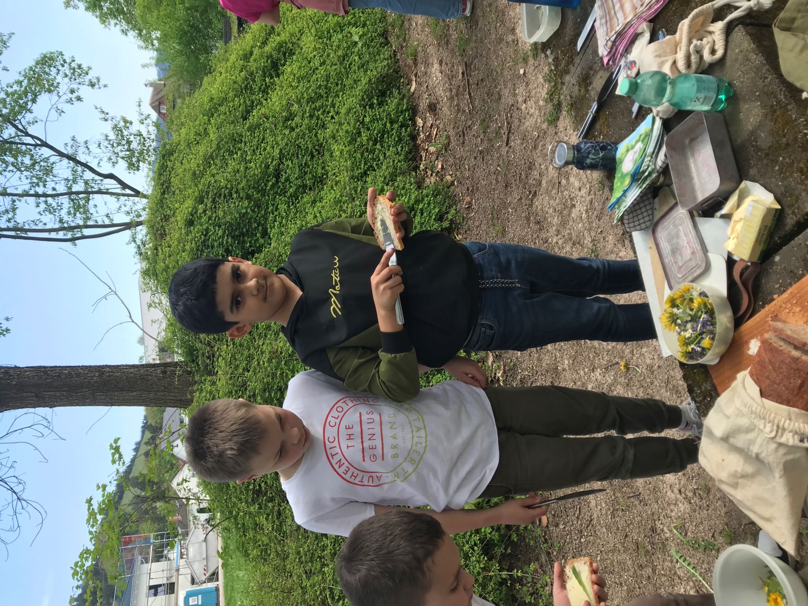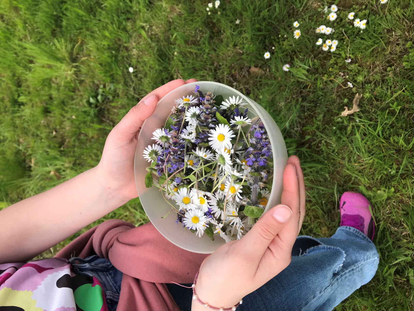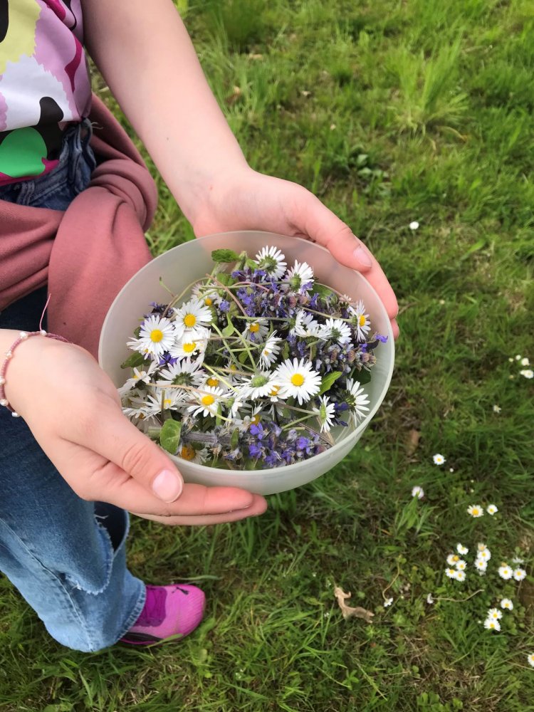 Die Erdschützer- Werkstatt war auf der Suche nach essbaren Wiesenkräutern.