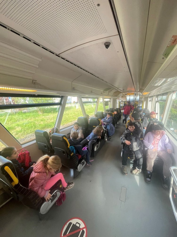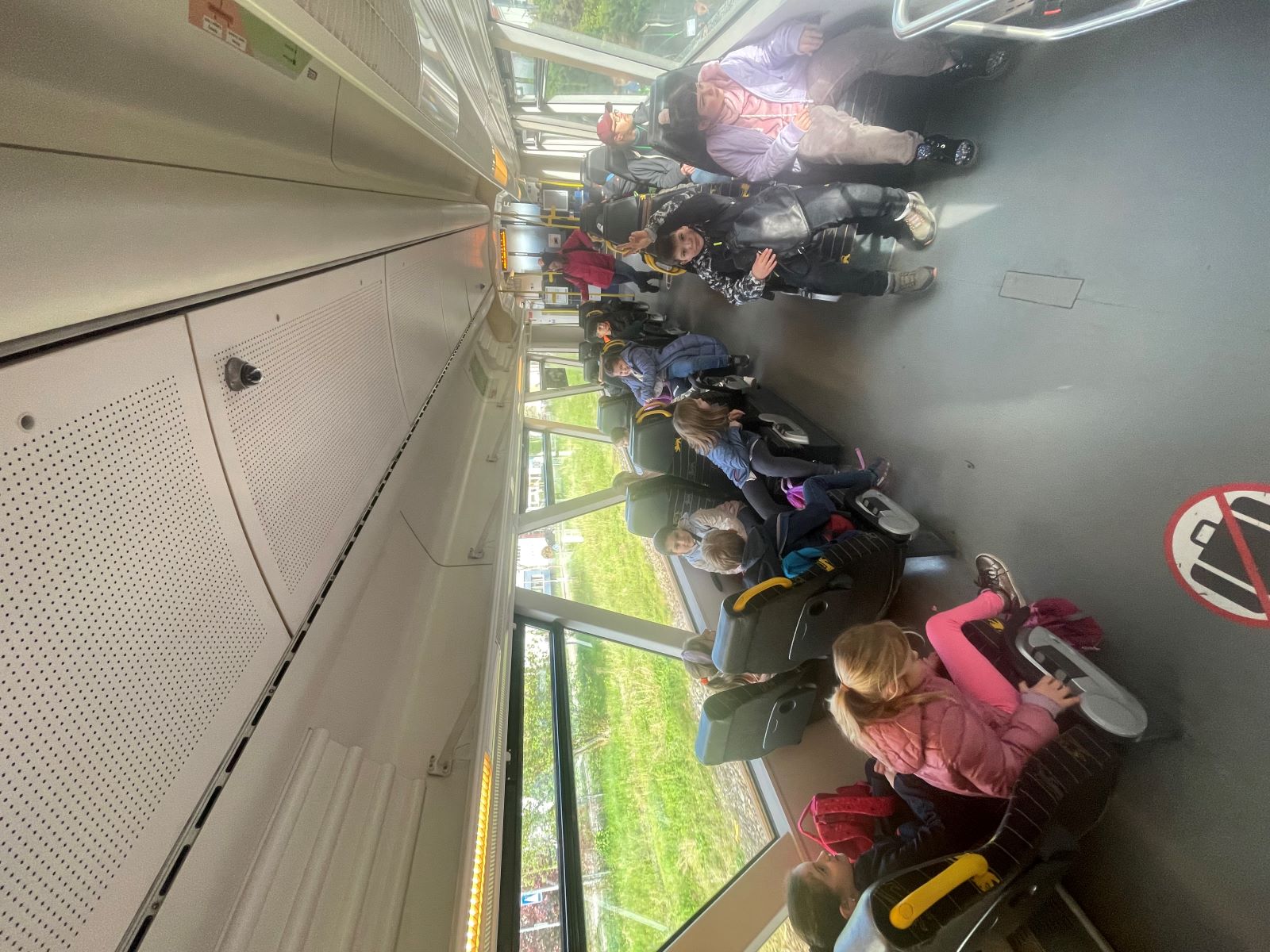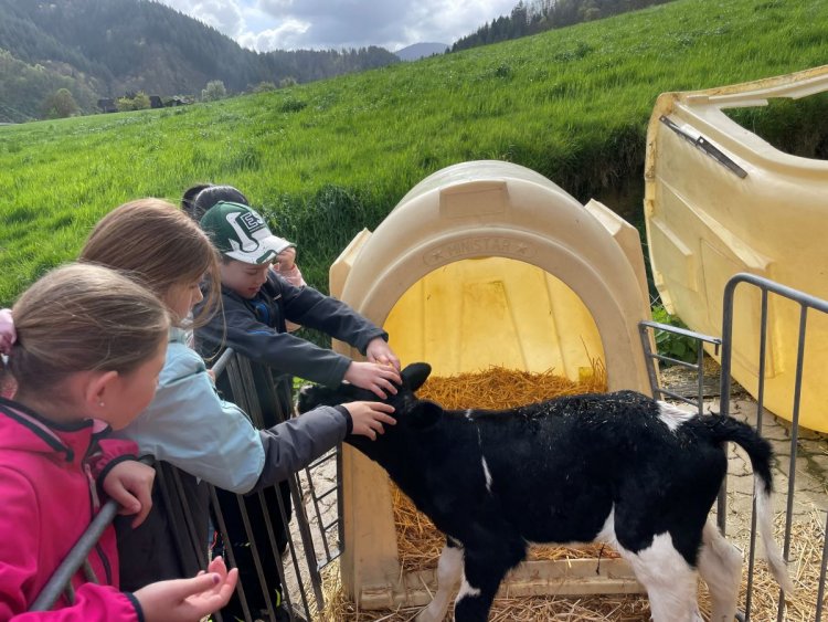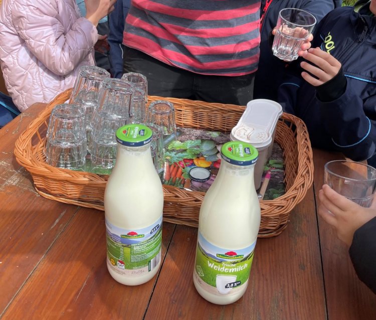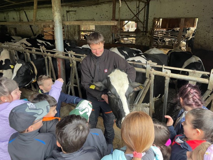 Die Klasse 2b nahm den Zug, um den Bauernhof der Familie Treyer in Oppenau-Ramsbach zu besuchen. Die Kinder konnten die ganze Welt der Milchkühe entdecken: Ernährung, Lebensweise, Nutzen und Aufzucht. Dort durften sie die Kühe streicheln und melken.