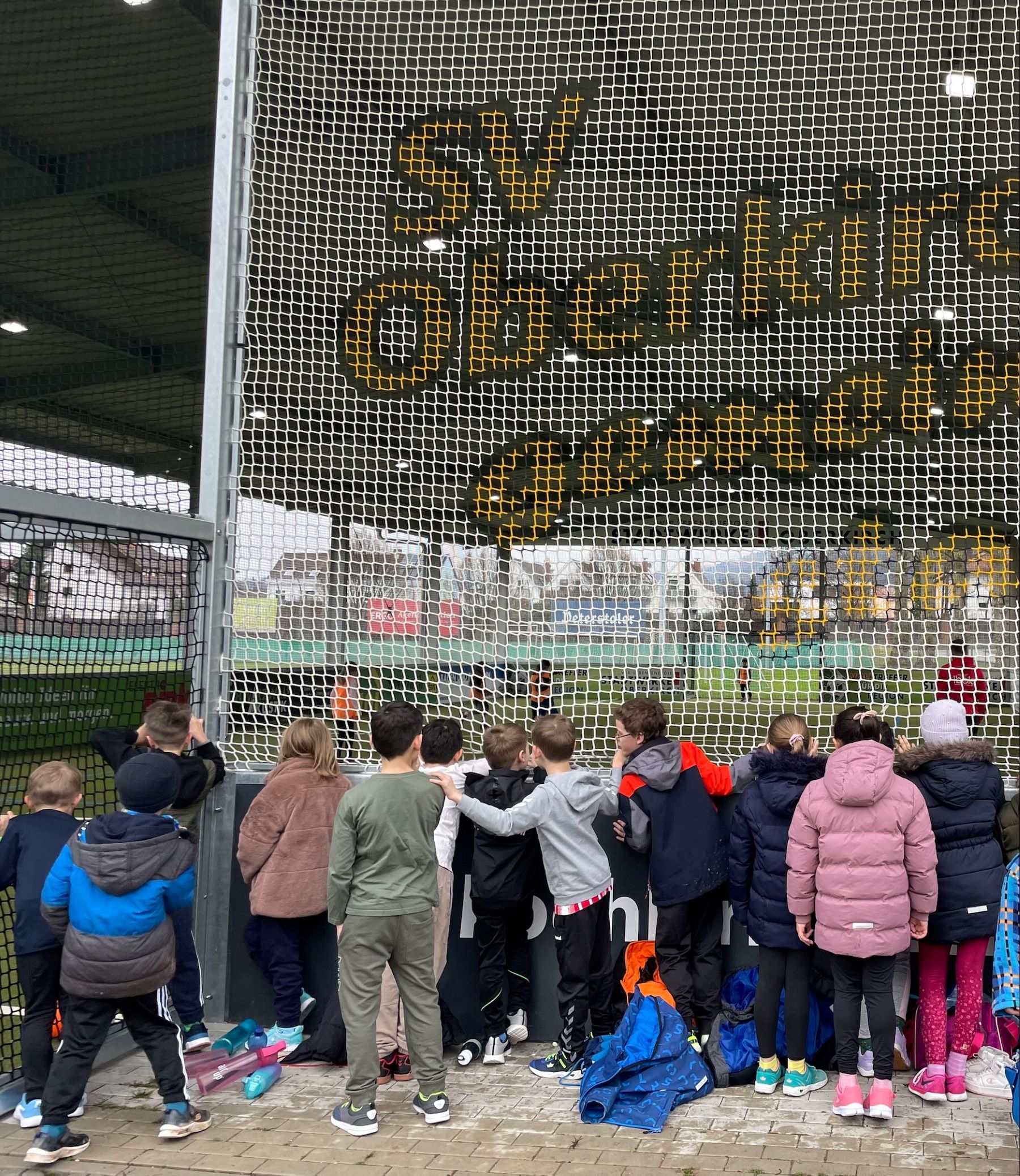 Heute haben wir, die 2b, gerade eine Stunde lang mit David im Stadion von Oberkirch Fußball gespielt. Das war super! Es hat uns sehr gut gefallen. Danke, David! WH