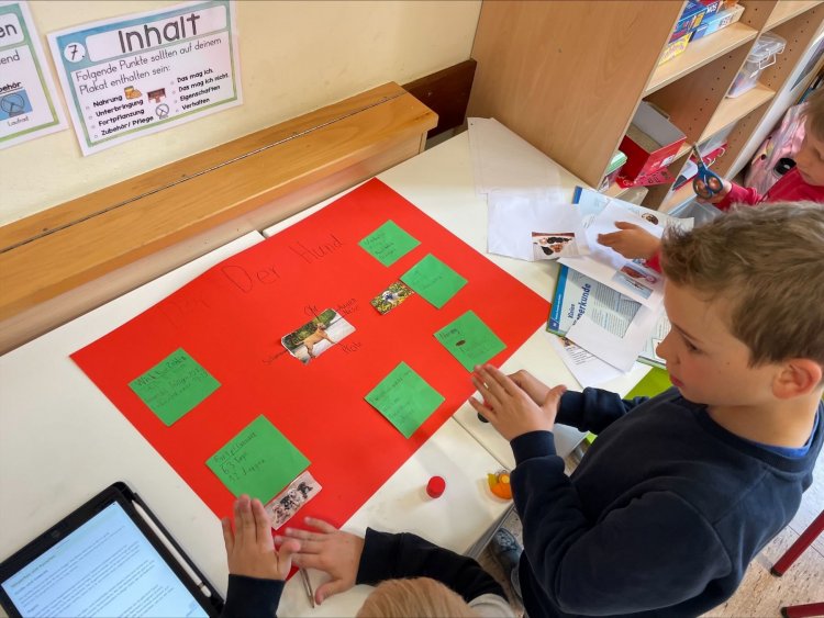 Im Sachunterricht beschäftigte sich die Klasse 2b mit dem Thema Haustiere. In Gruppen von 3-4 Kindern recherchierten die Schülerinnen und Schüler mit dem Ipad und mit Büchern über ein Tier und stellten es der Klasse vor. WH