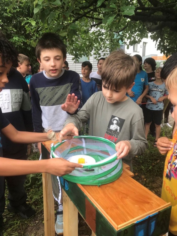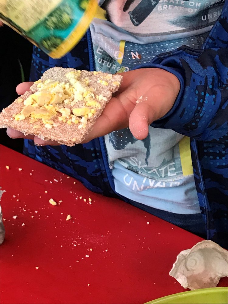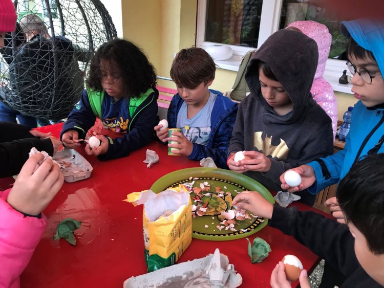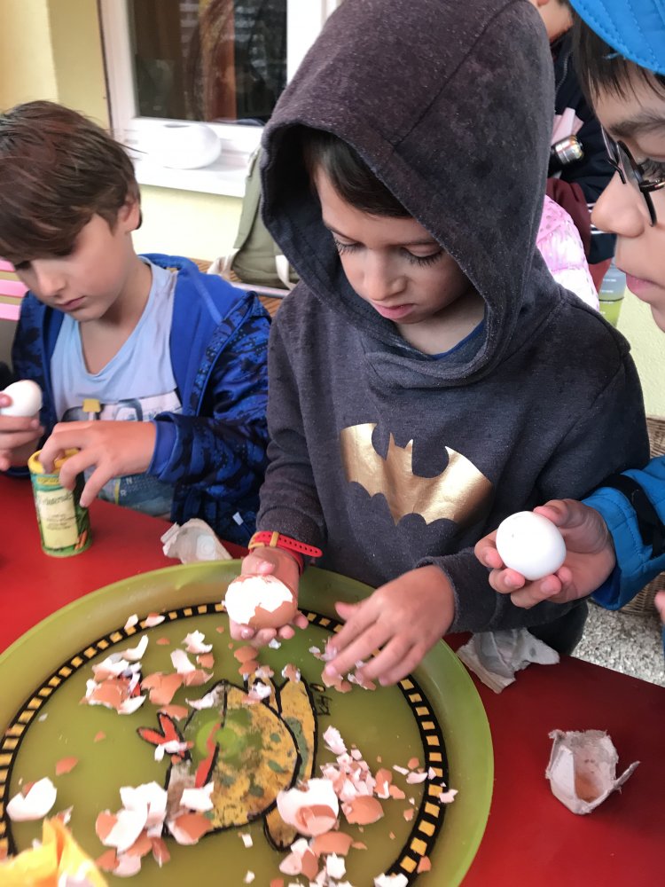 Vorher besprachen sie, was artgerechte Tierhaltung ist und worauf wir achten müssen, wenn wir Eier kaufen: Natürlich am besten aus Freilandhaltung und Bio.