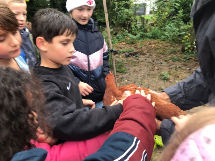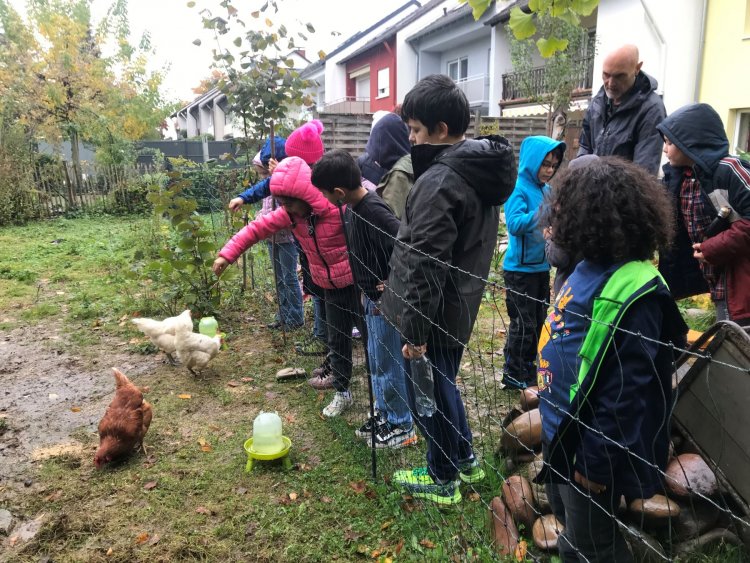 Während der Pause konnten sie ein Glas Milch trinken und sich auf eine Überraschung freuen: drei Tage alte Küken! Nach einer Vesperpause lernten die Kinder die Welt der Hühner und ihrer Eier kennen: Nahrung, Lebensweise und Feinde. Vor der Abfahrt durfte sich jedes Kind einen Joghurt und eine Schoki nehmen. Zum Abschluss dieses schönen Tages konnten sich die Kinder auf dem Spielplatz austoben, bevor sie wieder mit dem Zug zurückfuhren. WH