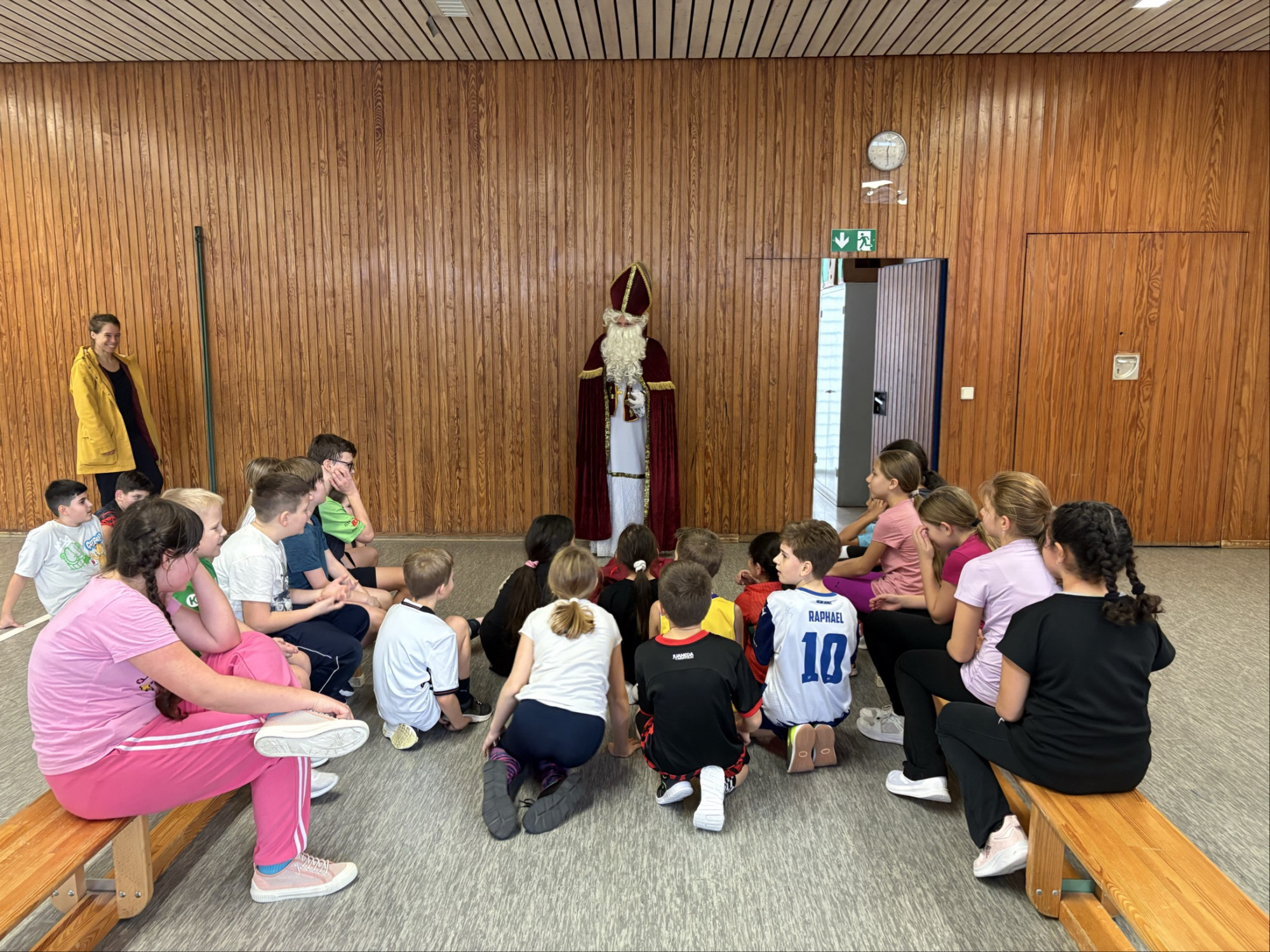 Heute war großer Nikolaus-Tag an unserer Schule. Nicht nur in den Klassenräumen sorgte der Nikolaus für leuchtende Augen - sogar in der Sporthalle tauchte er überraschend auf. Ein unerwarteter Besuch, viel Gelächter und strahlende Gesichter. Ein Nikolausmorgen, den niemand so schnell vergisst!