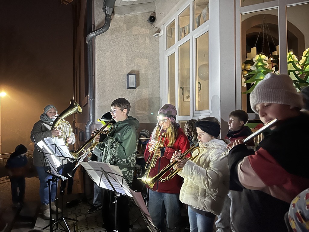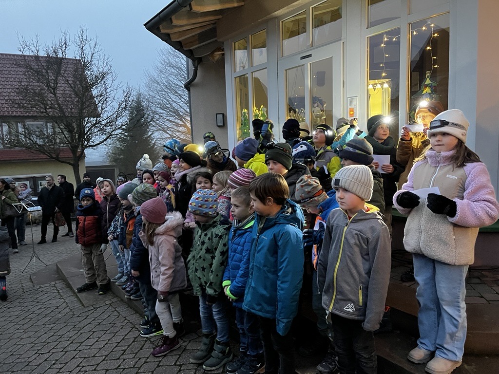 Schöne Tradition in Tiergarten: die Gestaltung des Adventsfensters. Die Schüler sorgten beim diesjährigen Adventsfenster für eine stimmungsvolle Atmosphäre. Klasse 1 und 2 sangen Lieder, gefolgt von den Zweitklässlern, die Texte vortrugen. Zum Abschluss begeisterten die Flötenkinder von Tiergarten die Zuschauer. Die haslacher Bläserklasse rundete das Rahmenprogramm des Adventsfensters mit einem musikalischen Beitrag feierlich ab. C.C.