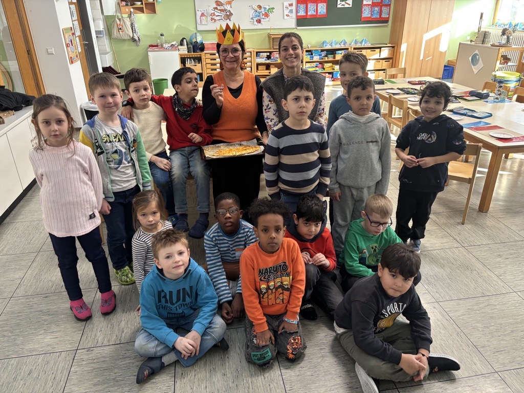 In der Grundschulförderklasse fand kürzlich eine besondere Aktion statt: Julie, unsere französische Austauschlehrerin, backte mit den Kindern einen traditionellen Galette des rois (Dreikönigskuchen). Natürlich hat es allen richtig gut geschmeckt. Besonders charmant war, dass letztendlich Frau Woelki die im Kuchen versteckte Fève fand und zur Königin gekrönt wurde. Ein lustiger Abschluss des Backevents! c.c.