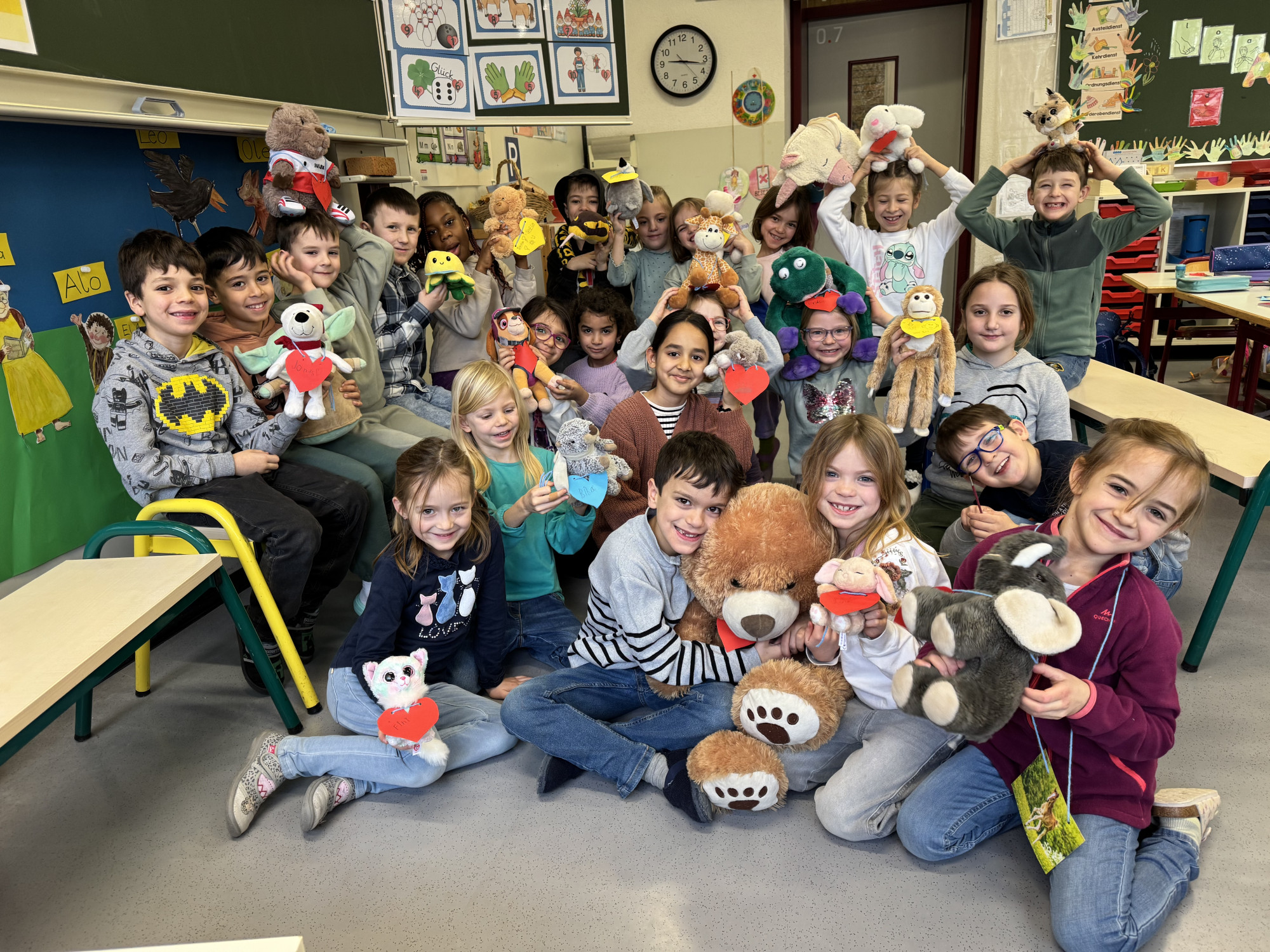 Die Kinder der Klasse 1 c feierten als Klassenbelohnung einen fröhlichen "Kuscheltiertag". I.T.