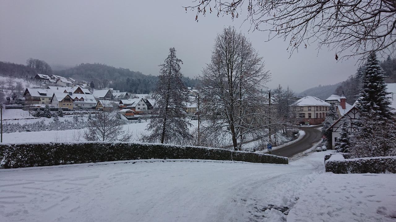 Blick auf das winterliche Ödsbach von der Kirche aus, nach dem Schülergottesdienst am 16.12.2022.