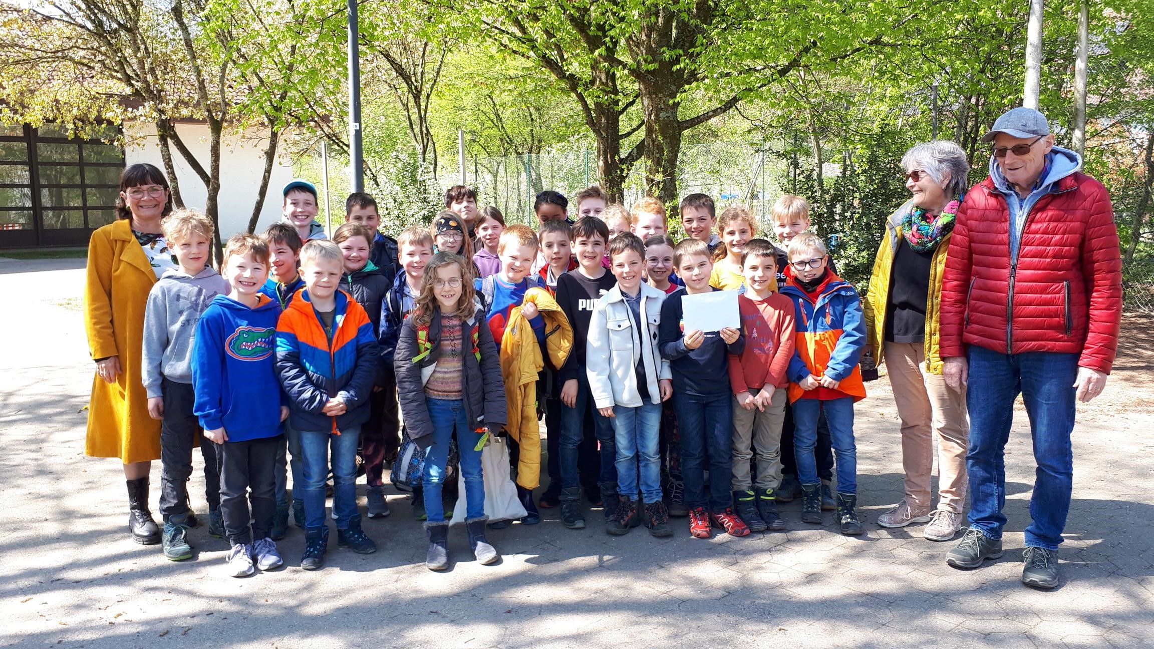 Freudig nahmen Kinder der Klasse3Ö mit ihrer Schulleiterin Eva Woelki eine Spende der Seniorengemeinschaft Ödsbach für das geplante „grüne Klassenzimmer“ an.